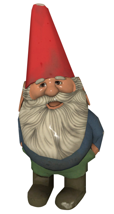 - Модель гнома основана на садовом гноме Jim with Hands in Pockets.