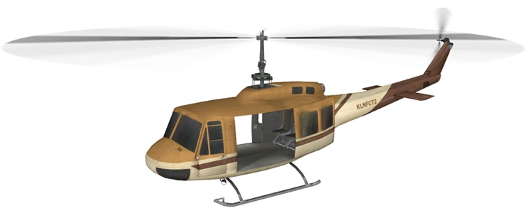 Модель вертолёта представляет собой смесь вертолётов Bell 204/205, в ней наблюдаются определённые особенности обеих моделей.