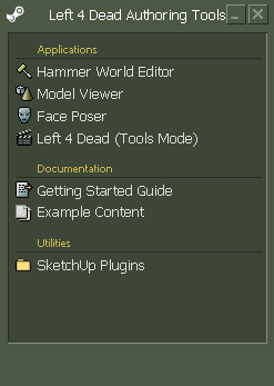Left 4 Dead Authoring Tools, также известное как SDK (Stage Development Kit) — набор программных утилит, предназначенных для создания модификаций к игре Left 4 Dead. Для всех пользователей Steam, имеющих на своём аккаунте копию игры, распространяется бесплатно. Программа находится во вкладке «Инструменты» (необходимо поставить галочку), что в разделе «Библиотека».