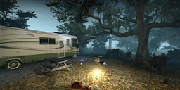 To make it to the next safe room, the Survivors must make their way across a rickety bridge over a lake and find their way into the campground. Once there, they must traverse the thick woods and navigate past the various RVs and campsites before taking a hiking trail and heading off the beaten path.