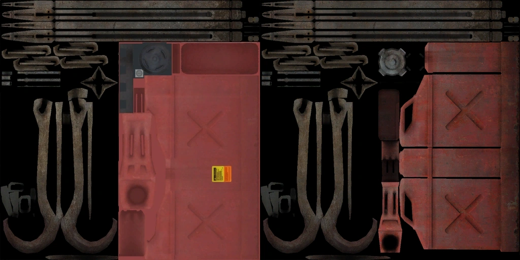 The L4D Gas can's texture compared to the HL2 Gas can's texture.