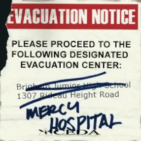- "To anyone who can hear this, proceed to Mercy Hospital for evacuation! I repeat, proceed to Mercy Hospital for evacuation!"