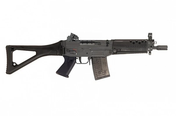 SG 552 with buttstock, handguard, magazine, and sights attachments.