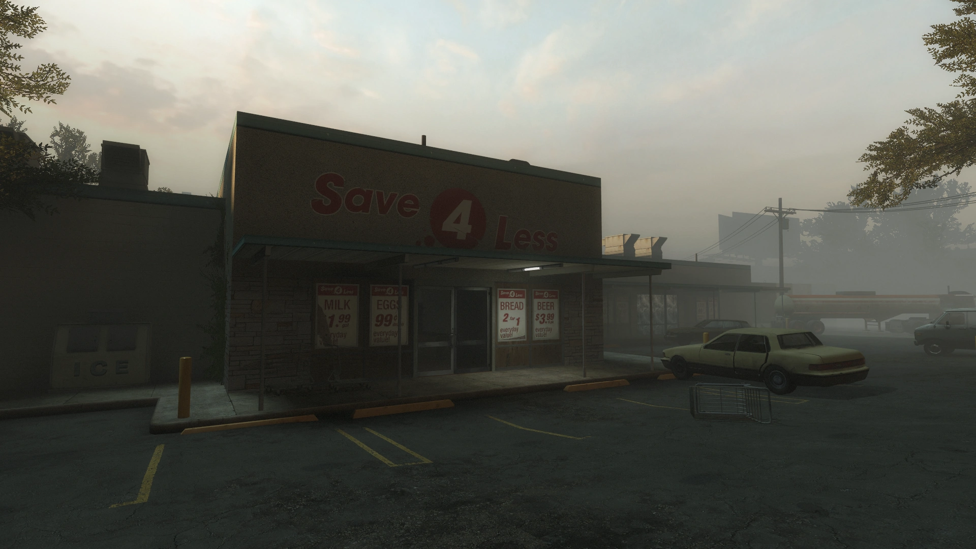 Save 4 Less is another minor objective and setting for the second chapter of the Dead Center campaign in Left 4 Dead 2. The store is located just north of Highway 10, between Whitaker's Gun Shop and Liberty Mall near Interstate #16 in Savannah.