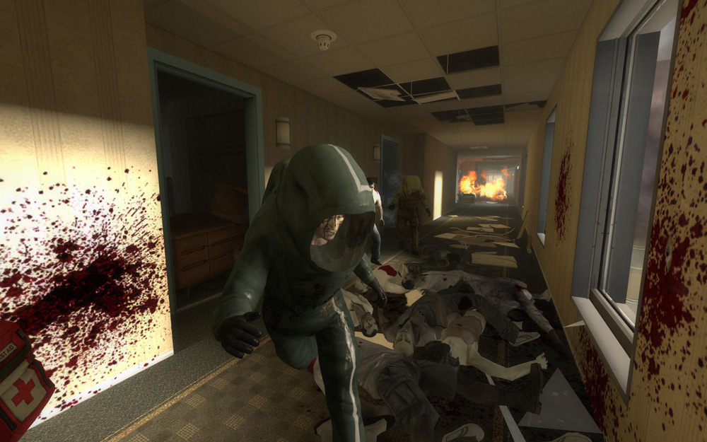 - The fires at the ground level do not appear (though they still do cause damage) until the elevator gets close to the ground floor. This is probably for optimization purposes, but Infected who spawn before the fires appear should be wary.