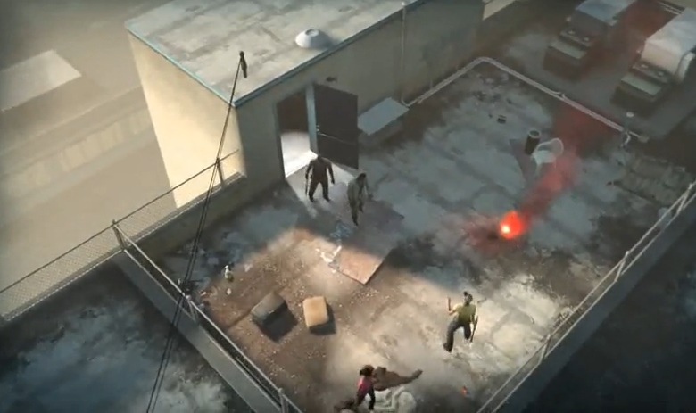 - Though Nick and Coach are shown to reach the roof together in the trailer, Coach is already outside during the introduction scene with Nick still going through the door. This is much easier to see in Versus mode, as the camera will not be locked.