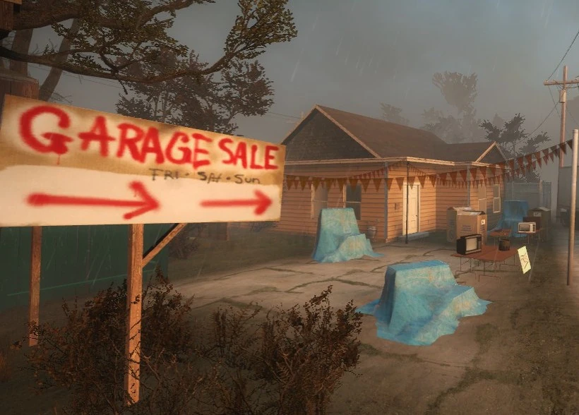 The garage sale where weapons and items can be found.