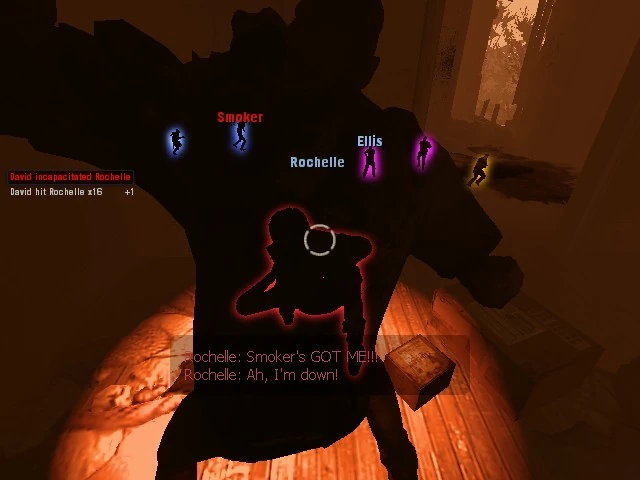 - If you can't see the Smoker or the tongue, shoot the Smoker through the wall or ceiling (i.e. judge the position of the Smoker relative to the Survivor getting clawed).