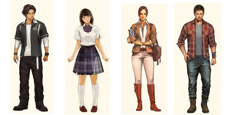 Notably, the new characters are younger and wear a more casual clothing. The players are able to play as two Asian teenagers (Yusuke Kudo and Haruka Hirose) who were visiting America when the outbreak began, an elder woman who was their Tour Guide (Sara Kirishima) and a bartender of The Vannah (Blake Jordan). Unlike the two original Survivors from both games (except for Bill), the Arcade Survivors were given full names.